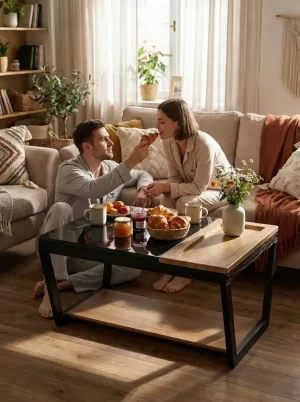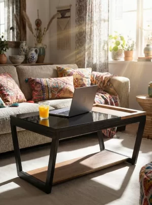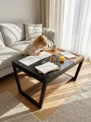 Журнальный стол BeautyStyle 31 — это идеальное сочетание контрастных материалов, создающее уникальный акцент в вашем доме или квартире. Прямоугольная столешница делится на две части: деревянная, выполненная из МДФ, покрытого защитной пленкой, и основная часть из прочного стекла. Деревянная часть столешницы представляет собой несъемный поднос с небольшими бортиками, что предотвращает возможность соскальзывания предметов. Это делает изделие не только стильным, но и практичным в использовании. Опоры из шпона березы обеспечивают устойчивость и надежность конструкции.