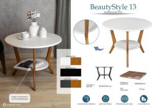 Журнальные столы «BeautyStyle» 13 и 15 — современная интерпретация классического интерьерного аксессуара. Модели отличаются только формой столешницы – в первой модели круг, во второй — мягкий треугольник. В обоих столах ножки изготовлены из натурального массива, надежно крепятся к столешницам и полкам, что обеспечивает устойчивость всей конструкции. Столики отлично подойдут как для оформления общественных рекреационных пространств, путем комбинации форм и цветов отделки, так и для домашних интерьеров в современных скандинавском, техно, минималистическом стилях.
