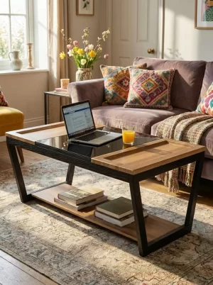 Журнальный стол BeautyStyle 33 — это идеальное сочетание контрастных материалов, создающее уникальный акцент в вашем доме или квартире. Прямоугольная столешница делится на три части: деревянные, выполненные из МДФ, покрытого защитной пленкой, и стеклянная часть. Столик гармонично впишется в любую гостиную, столовую или даже на балкон, придавая вашему дому неповторимый шарм. По бокам стеклянной столешницы расположены два несъемных подноса с небольшими бортиками, что предотвращает возможность соскальзывания предметов.