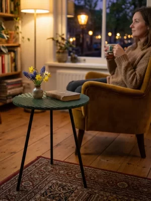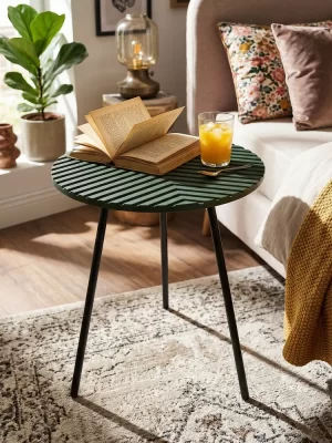 Этот столик выделяется тактильной текстурой гравировки, защищенной от влаги и царапин, что сохраняет благородный зеленый оттенок годами и упрощает уход, отличая его от гладких аналогов на рынке. В скандинавском минимализме или эклектике он сливается с растениями и текстилем, становясь уютным центром у дивана, в спальне или на балконе, подчеркивая вкус к уникальным деталям и вдохновляя на обновление пространства без хлопот.