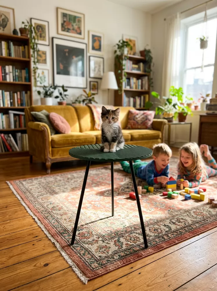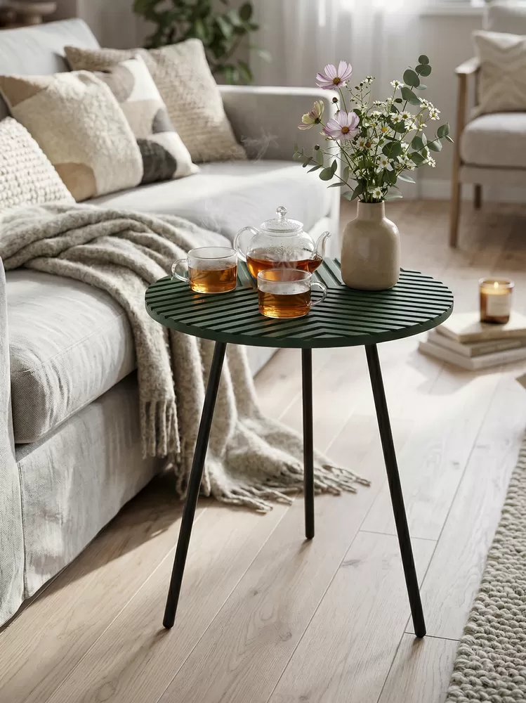 Этот столик выделяется тактильной текстурой гравировки, защищенной от влаги и царапин, что сохраняет благородный зеленый оттенок годами и упрощает уход, отличая его от гладких аналогов на рынке. В скандинавском минимализме или эклектике он сливается с растениями и текстилем, становясь уютным центром у дивана, в спальне или на балконе, подчеркивая вкус к уникальным деталям и вдохновляя на обновление пространства без хлопот.
