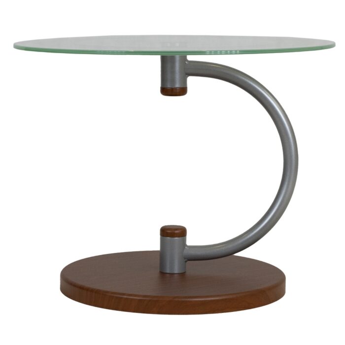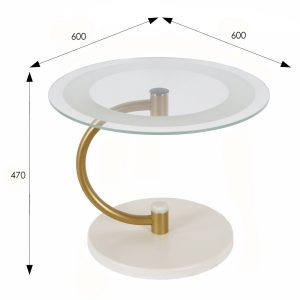 Небольшой, но массивный – вес 12кг! и устойчивый журнальный стол со стеклянной столешницей диаметром 58см, мощным основанием диаметром 42см из лмдф и опорой в виде полукруга идеально подойдет для оформления зон отдыха офисных и общественных помещений, современных частных интерьеров.