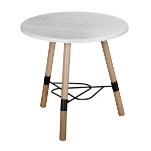 Авторский столик с классической круглой столешницей и оригинальной стальной полочкой-сеткой с ажурным переплетом. Такая полочка с одной стороны, позволяет использовать дополнительную поверхность для хранения стопки любимых журналов, с другой стороны – не позволяет захламлять её вездесущей мелочью. Фацет по периметру столешницы – дань современным тенденциям и гигиене интерьера, ножки из массива бука – классика стиля, продуманность конструкции — гарантия долгого срока службы. Компактные размеры столика делают его уместным в любой, даже самой небольшой комнате. Цвет и форма столика больше подходят к молодежному стилю обстановки жилья. Конструкция столика надежна, цена доступна, дизайн современен, процесс приобретения прост, — все делает этот предмет интерьера покупкой, о которой потом приятно. вспоминать.