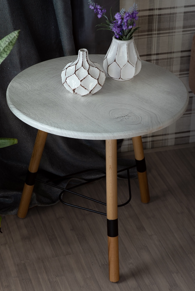 Авторский столик с классической круглой столешницей и оригинальной стальной полочкой-сеткой с ажурным переплетом. Такая полочка с одной стороны, позволяет использовать дополнительную поверхность для хранения стопки любимых журналов, с другой стороны – не позволяет захламлять её вездесущей мелочью. Фацет по периметру столешницы – дань современным тенденциям и гигиене интерьера, ножки из массива бука – классика стиля, продуманность конструкции — гарантия долгого срока службы. Компактные размеры столика делают его уместным в любой, даже самой небольшой комнате. Цвет и форма столика больше подходят к молодежному стилю обстановки жилья. Конструкция столика надежна, цена доступна, дизайн современен, процесс приобретения прост, — все делает этот предмет интерьера покупкой, о которой потом приятно. вспоминать.