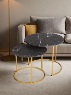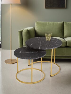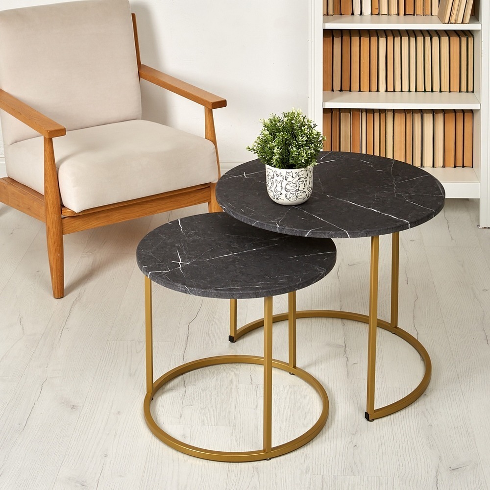 Журнальные столики МеталлАрт М001 – это идеальное решение для тех, кто ценит стиль и функциональность. Два круглых столика разных размеров легко адаптируются к вашим потребностям: маленький столик можно быстро убрать под большой. Столешницы выполнены из прочного МДФ и покрыты защитной пленкой ПВХ, что обеспечивает стойкость к горячим блюдам и напиткам. Металлический каркас обеспечивает надежность и долговечность, а накладки из искусственного фетра защитят напольное покрытие от царапин.