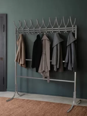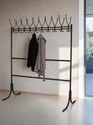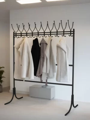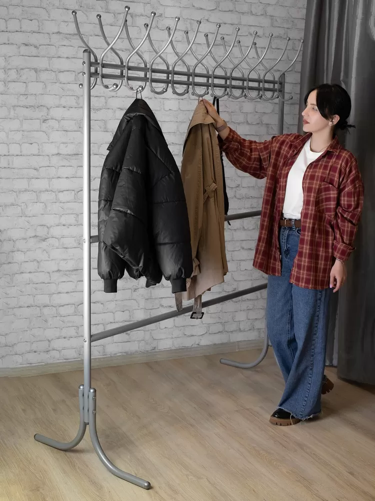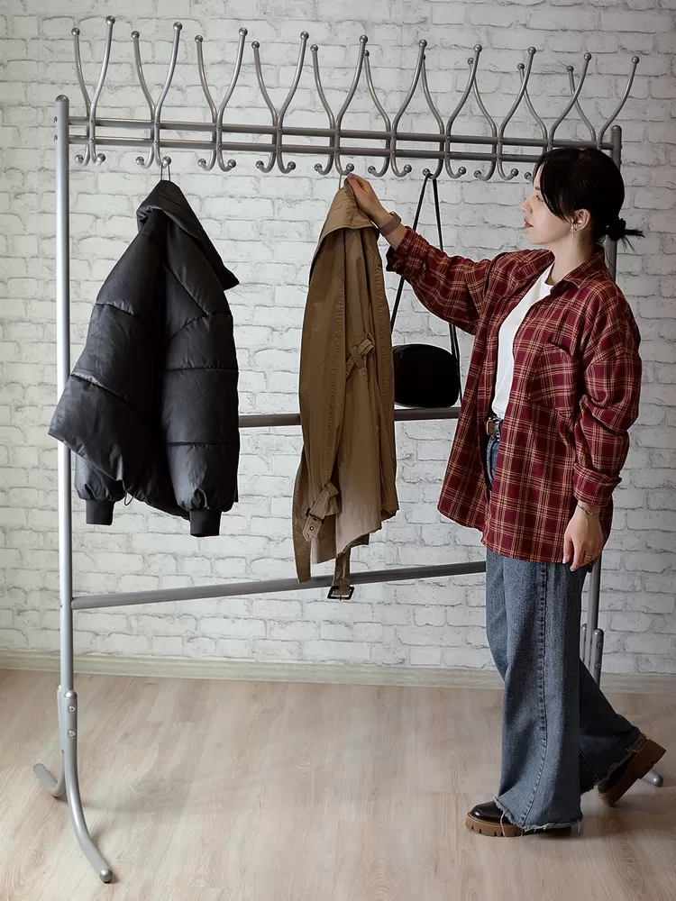 - Вешалка рассчитана максимально на 20 посетителей: 20 крючков для одежды, столько же для головных уборов